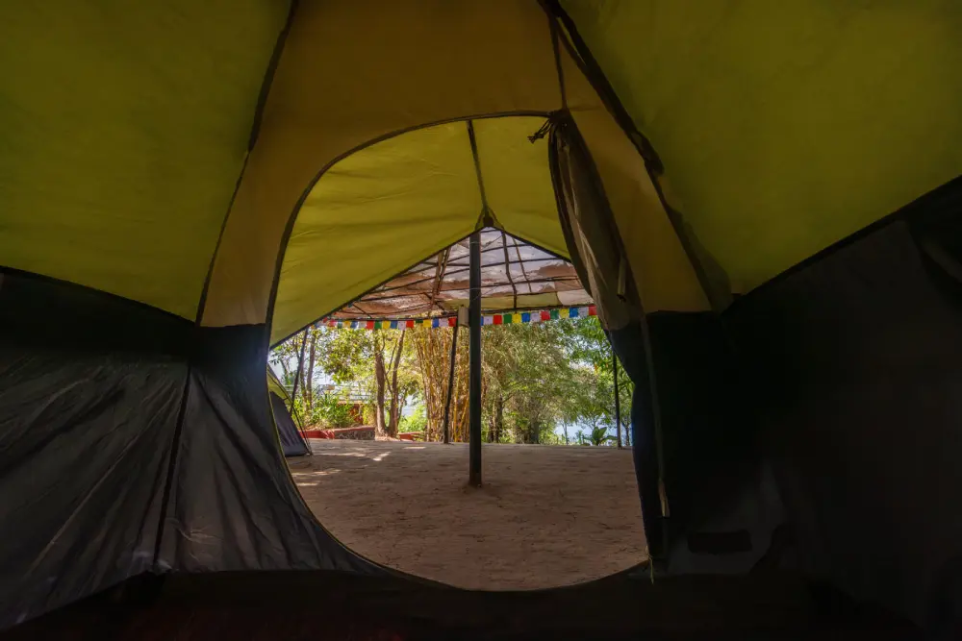 With clean washrooms nearby and access to hammocks, games, and stargazing spots, the tents blend simplicity, community, and nature seamlessly. A short walk to the lake completes this idyllic escape.
